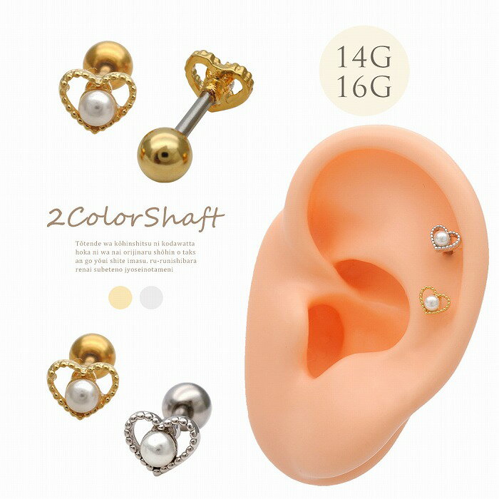 ボディピアス 軟骨ピアス [14G 16G ]愛らしい ちび オープンハート×パール heart デイリーで使えるデザイン♪ストレート ヘリックス 0251 ボディーピアス