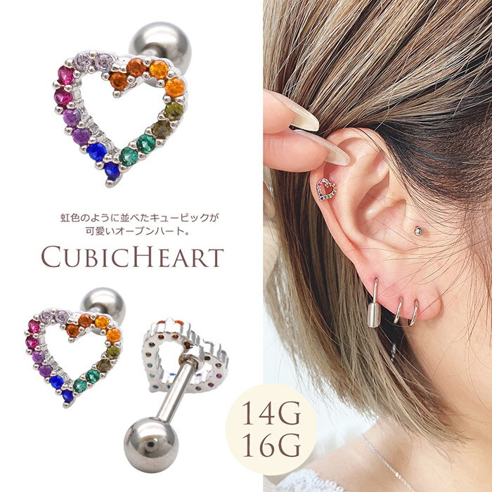 ボディピアス 軟骨ピアス[14G 16G ]色のように並べたキュービック が可愛い ♪オープンハート ヘリックス 0066 ボディーピアス