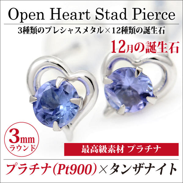 タンザナイト ピアス プラチナ 900 Pt900 両耳用 オープンハート 12月 誕生石 定番 スタッド ハート 送料無料 金属アレルギーに優しい fourm クリスマス 母の日 レディース メンズ 男性 女性 ラッピング 包装 袋 誕生日 プレゼント ケース 箱 華奢 可愛