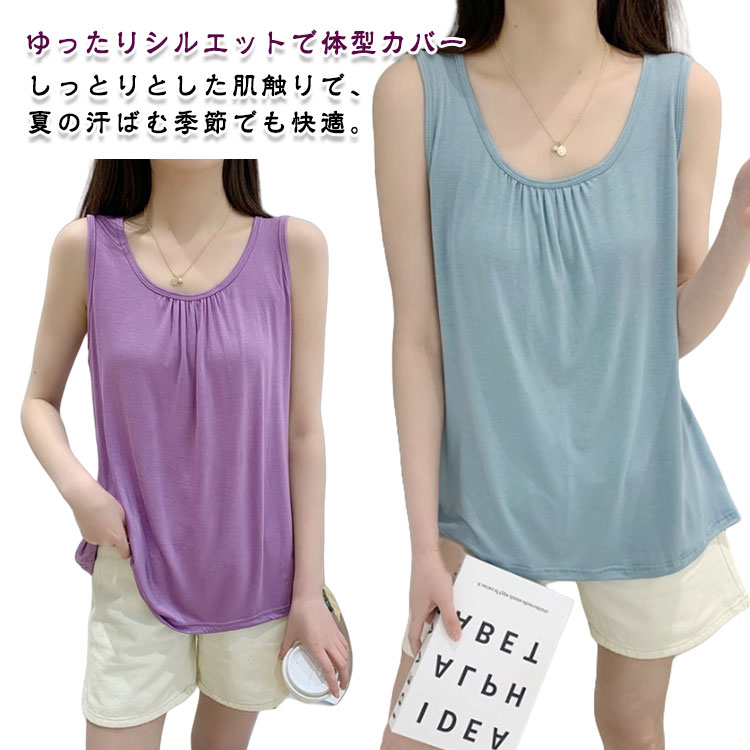 タンクトップ レディース 大きいサイズ ルームウェア ゆったり 重ね着 夏用 体型カバー 無地 モダール 快適 リラックスウェア ノースリーブ 女性用 柔らかい カジュアル 肌触り シンプル オールシーズン対応 おしゃれ