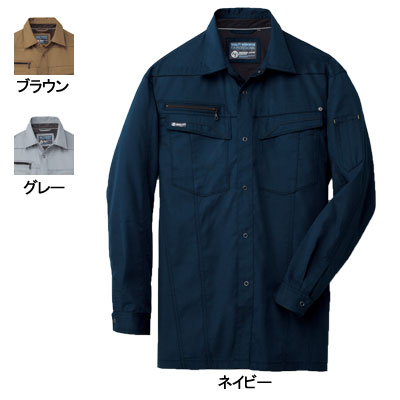 作業服 6453L4L6L他のサイズを選ぶ●●●商品説明●関連商品※641半袖ブルゾン※643長袖ブルゾン※649スラックス※645長袖シャツ※647半袖シャツ※648カーゴパンツ●春夏用●素材/ポリエステル65%、綿35%(T/Cソフトバーバリー)●衿裏メッシュ、衿裏に通気性のよいメッシュ生地を採用。胸ファスナーポケット、大切な物の収納に適した、ファスナー付きポケット。胸ペン差し、左胸部分にペン差しを採用。携帯電話ポケット、携帯電話がピッタリ収まる機能的な専用ポケット。スマートフォンにも対応。袖ペン差し、左袖部分にペン差しを採用。デオドラントテープ、いやなニオイをシャットアウト!効果バツグンの消臭テープ。ノーフォークメッシュ、背中のノーフォークで作業時のつっぱり感を解消!さらに、メッシュで夏場もさわやか。●サイズ:S(胸囲/106、肩巾/46、着丈/72、袖丈/55)、M(胸囲/110、肩巾/47、着丈/74、袖丈/58)、L(胸囲/114、肩巾/49、着丈/76、袖丈/59)、LL(胸囲/118、肩巾/51、着丈/78、袖丈/60.5)、3L(胸囲/124、肩巾/53、着丈/80、袖丈/62)、4L(胸囲/132、肩巾/55、着丈/80、袖丈/63)、6L(胸囲/142、肩巾/57、着丈/80、袖丈/63)●カラー:ネイビー、グレー、ブラウン商品仕様頼れる定番アイテム、夏のT/Cソフトバーバリーをリニューアル!!エッジの効いたデザインにスマートフォン対応ポケットを搭載!!コーディネイト商品半袖ブルゾン641長袖ブルゾン643スラックス649長袖シャツ645半袖シャツ647カーゴパンツ648