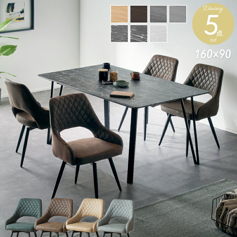 10%クーポン 11/18-21★ ダイニングテーブルセット 4人用 5点セット 幅160cm 160×90 4人掛け 5点セット テーブル ダイニングセット ダイニングテーブル ダイニングチェア 回転チェア チェアー 4人 5点 木目調 石目調 コンクリート調 おしゃれ カサス ゲイツ カリスト