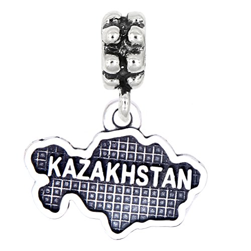 【中古】【未使用・未開封品】スターリングシルバーいぶし仕上げ旅行マップカザフスタンのダングルビーズチャーム