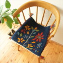 ペルシャ ギャッベ 【 本場 イラン産 】 39x42cm 厚み 2.48cm ブルー ネイビー 青 紺色 花 フラワー 座布団 セール ギャベ チェアマット ウール100% 天然素材 草木染め 手織り 絨毯 ラグ 赤ちゃんも安心 カシュガイ族 遊牧民族 プレゼント T7067