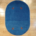 ペルシャ ギャッベ 本場イラン産 玄関マット 楕円形 小判型 88Φ62cm 厚み 2.44cm シンプル ブルー 無地 青色 ウール100% 天然素材 草木染め セール ギャベ 手織り絨毯 ラグ Gabbeh 赤ちゃんも安心 遊牧民族 カシュガイ族 シラーズ RJ12719