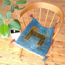 ペルシャ ギャッベ 【 本場 イラン産 】 新柄 座布団 44.5x41.5cm 厚み 2.28cm ライオン 青色 ブルー セール ギャベ チェアマット ウール100% 天然素材 草木染め 手織り 絨毯 ラグ 赤ちゃんも安心 カシュガイ族 遊牧民族 プレゼント 【T6634】