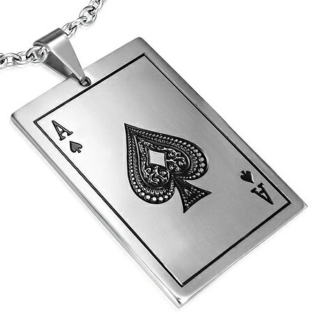 トランプのスペードのエースをデザインしたステンレスペンダント。素材にステンレスを使っているので傷つきにくく、アクティブに使ってもOK!その上医療用ステンレスなのでアレルギーも安心です。シルバー925に比べて、価格も手頃で、高級感を発揮できるステンレス製ペンダントトップはプレゼントにも最適です。ステンレストップのみで買えるので、ネックレスパーツとしてだけでなく、色々なステンレスパーツとして、自由自在にアレンジが楽しめるオシャレなステンレスアクセサリーです。永遠に変わらない素材ステンレスはペアアクセサリーにもオススメです。軽量かつ丈夫で変色することはほとんどなく、しかも、金属アレルギーがほとんどない事も特徴です。※チェーンは別売りです。 スペックこちらの太さより細いチェーンをご利用ください:約4.0mm大きさ:約22mmx40mmx2.0mm素材サージカルステンレス316L備考・表示は1個の価格です。・ハンドメイドの為多少サイズは異なります。
