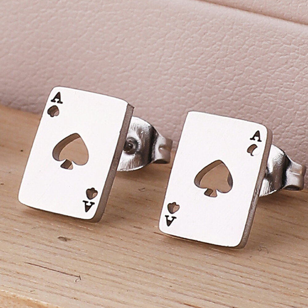 ハートのエース ステンレスピアス(1ペア) 両耳 ファッションピアス トランプ マジシャン カジノ 面白い カード 男 女 メンズ レディース 男性 女性 20G 20ゲージ 耳 軟骨 キャッチピアス スタッドピアス サージカルステンレス316L プレゼント