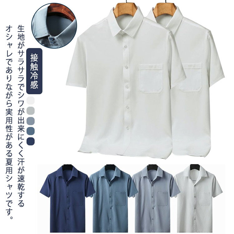 2枚セット 半袖シャツ メンズ 接触冷感 夏 涼しい カジュアルシャツ 無地 トップス 送料無料 羽織り オーバーサイズ とろみ 大きいサイズ ビッグシルエット ワークシャツ 作業着 ゆったり 父の日 ギフト