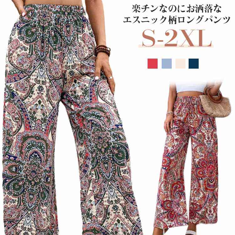 ワイドパンツ ガウチョパンツ レディース エスニック 総柄 薄手 軽い カジュアル 涼しい ストレート ロングパンツ ゆったり 体型カバー イージーパンツ リラックスパンツ 柄パンツ ルームウェア ボトムス おしゃれ アジアンパンツ 20代 30代 40代 50代 送料無料
