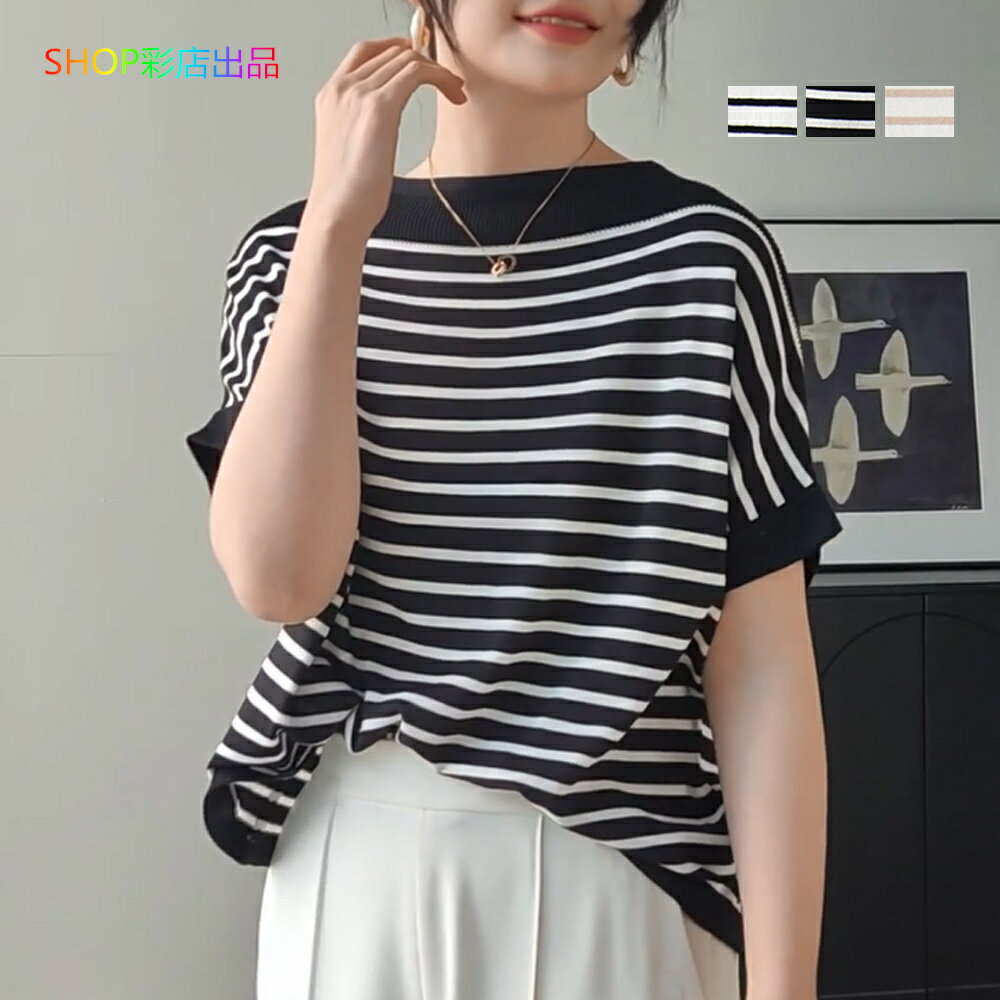 サマーニット 半袖 レディース ボーダー リブニット ボートネック ワンショルダー 縞柄 ゆったり フレンチスリーブ ニットソー おしゃれ かわいい カットソー ティーシャツ トップス 薄手 プルオーバー 半袖ニット カジュアル