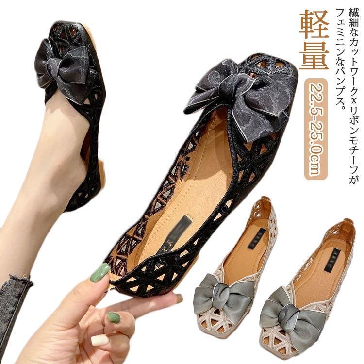 パンプス リボン 走れる フラットパンプス 夏 ローヒール 履きやすい カットワークパンプス スクエアトゥ 脱げない 歩きやすい かわいい 春 秋 ぺたんこ 軽量 痛くない 合成皮革 歩きやすい サンダル フェミニン カジュアル カットワークパンプス おしゃれ オフィス 通勤