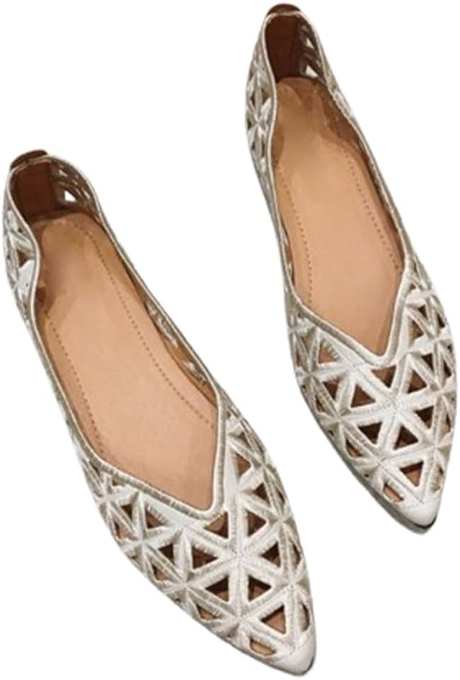 カットワークパンプス 通気性 フラット ローヒール 柔らか ポインテッドトゥ 透かし彫り 履きやすい ぺたんこ 軽量 痛くない 歩きやすい 脱げない 走れる 疲れにくい メッシュ サンダル風 春夏 お