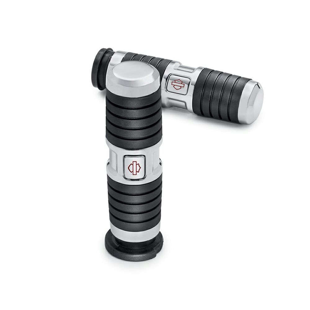 控えめな雰囲気と力強さを兼ね備えたカフナ・コレクション。スムーズな表面は鏡面のようなクローム。深い溝が入ったリッチブラックのゴムが表面を包み込み、確実なグリップ感を提供します。他のカフナ・コレクション・アクセサリーとのマッチングは完璧。ハンドグリップとライダーフットペグには赤いバー&シールドロゴ付き’16〜’17FXDLSおよび’16以降ソフテイルモデル、’11〜’12FLSTSE、’14〜’15FLSTNSE、’13〜’14FXSBSE、’16〜’17FXSE、’08以降ツーリング(’18以降FLTRXSEを除く)およびトライクモデルに適合。