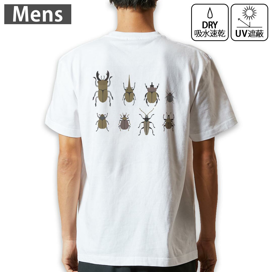メンズ ドライバックプリントTシャツ ホワイト 半袖 4.1オンス ジム トレーニング スポーツ 運動会 ドライアスレチック UVカット 紫外線遮蔽 吸水速乾 デザイン Tshirt S M L XL 2XL 3XL 4XL 5XL 6XL 017770 昆虫 虫 カブトムシ クワガタ
