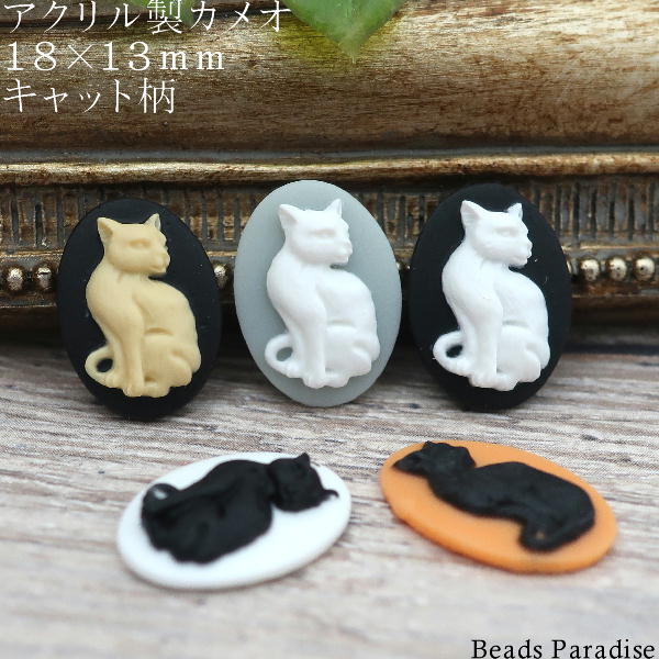 アクリル製カメオ カボション(1)18×13mmキャット柄(1個入り)