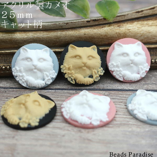 アクリル製カメオ カボション(3)25mm丸 キャット柄(1個入り)