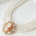貴婦人のブラウンカメオを クリスタルとオーロラストーン26石でデコラ 首元で華やか輝くにゴールド仕上げのヘッド 4連のベビーパールのカメオチョーカー きれいに首周りにフィットします。 (テールチェーンで約5センチ調節可) パーティーアクセサリーに対応 【サイズ】 カメオ 約:縦3センチ×横2.7センチ 首周り 約:33センチ+テール5センチ 【材質】 メタル、ガラス、プラパール、合成樹脂 日本製