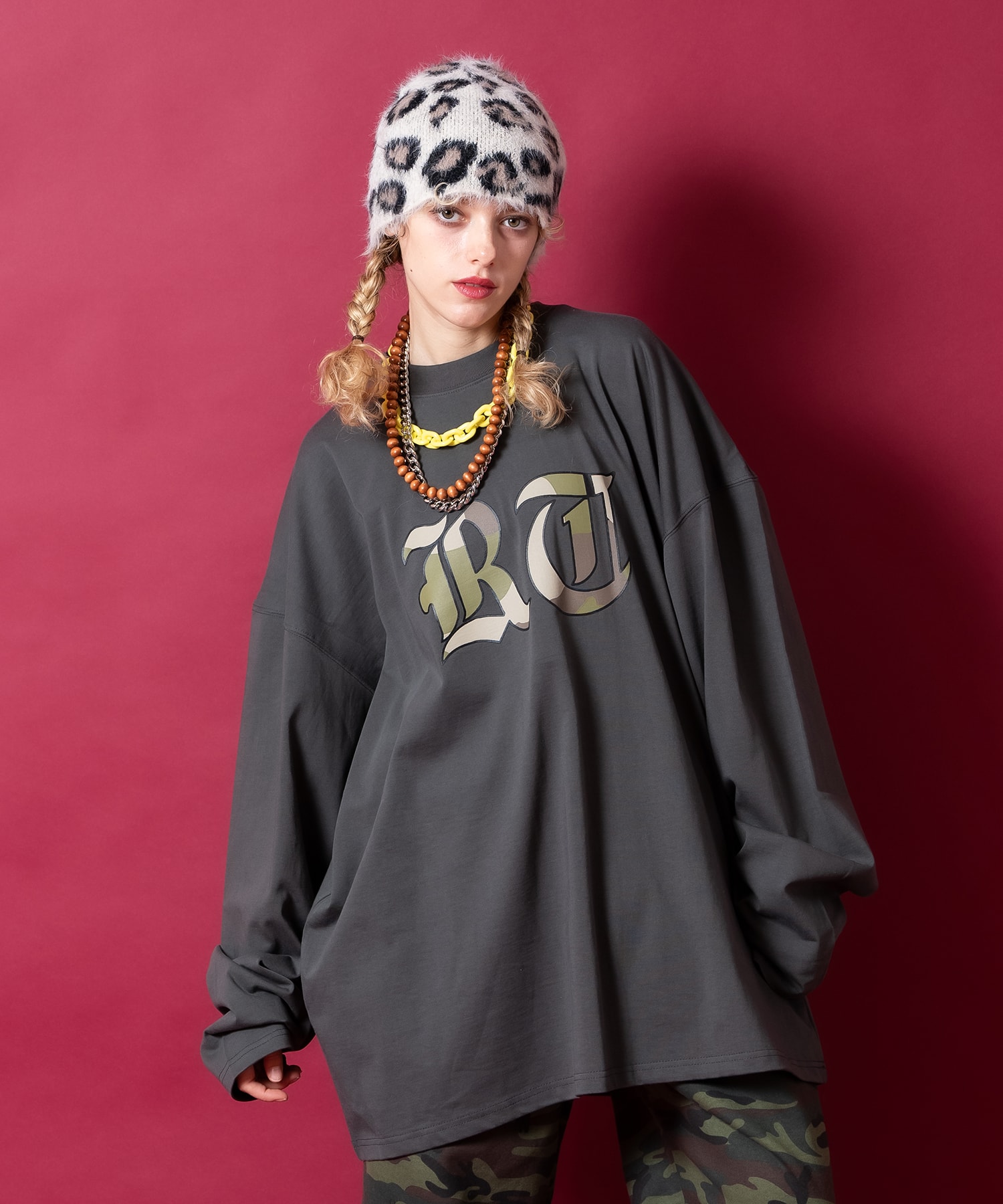 カモフラロゴプリントバックナンバリングオーバーサイズカットソー / ユニセックス メンズ レディース 長袖 ロングスリーブ Tシャツ