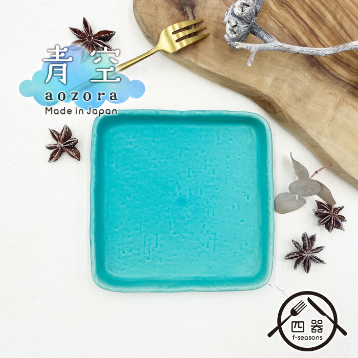 【青空シリーズ】手びねり中皿 14cm 皿 プレート スクエア スクエアプレート 中皿 小皿 取り皿 銘々皿 和モダン モダン 北欧風 シンプル おしゃれ カフェ食器 カフェ風 カラフルな食器 青い食器 ターコイズブルー 青色 ブルー 海色 プレゼント 贈り物 夏