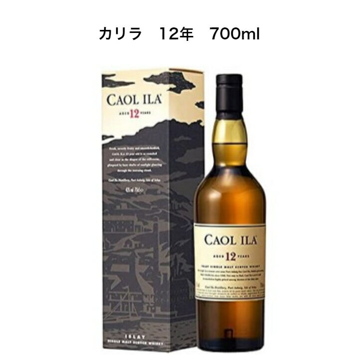 CAOL ILA 12 YEARS1846年にアイラ海峡を臨む崖に建てられたアイラ島の中では最大級の蒸留所で造られるモルト・スコッチ。CAOL ILA(カリラ)とはゲール語で"アイラ海峡"。アイラ島とジュラ島を隔てる海峡で周辺はスコットランド西岸において眺めが美しい地域です。豊かなピート香とスパイシーさをもちつつ新鮮な飲み口が特徴です。 【カリラはこちら】 ----------------------------------------------------------------------- 【産地】 イギリス/スコットランド/アイラ 【生産者】 カリラ ディスティラリー 【度数】 43度 【内容量】 700ml -----------------------------------------------□お酒 引越し 挨拶 退職祝い お返し 還暦祝い ディナー 男性 女性 父 母 彼氏 ギフト 内祝い 退職 お礼 誕生日 プレゼント 結婚祝い ウイスキー モルト スコッチ ウィスキー 洋酒リカオー結婚引出物 結婚内祝い 結婚御祝い 快気祝い 全快祝い 新築内祝い 上棟祝い 長寿祝い 就職内祝い 他各種内祝い・お返し 新築祝い 初老祝い 古稀祝い 喜寿祝い 傘寿祝い 米寿祝い 卒寿祝い 白寿祝い 長寿祝い お返し お中元・お歳暮 年始挨拶 ゴルフコンペ 記念品 賞品 暑中見舞い 残暑見舞い 【ギフト包装一覧はこちら】 関連商品[箱入] カーデュ 12年 40度 700ml シングルモルト ウイス...[大容量][箱不良] グレンモーレンジ オリジナル 10年 40度 1...[箱入]ラフロイグ 10年 40度 700ml or 43度 750m...5,899円5,999円5,270円[箱入]グレンドロナック 12年 43度 700ml【 お酒 ギフト ...[円筒]ベンリアック オリジナル 10年 43度 700ml モルト ...[箱入]ハイランドパーク 12年 ヴァイキングオナー バイキングオナー...6,158円5,299円4,930円[箱入] スモークヘッド オリジナル アイラ シングルモルト 40度 ...[箱入]グレンモーレンジ ラサンタ 12年 43度 700ml【 ウィ...[箱入] グレンモーレンジ キンタルバン 14年 700ml 【 ウ...5,699円5,825円6,299円[箱入] フィンラガン アイリーン モア 46度 700ml スコッチ...[箱入]フィンラガン シェリーウッド フィニッシュ 46度 700ml...[箱入] フィンラガン ポートフィニッシュ 46度 700ml シング...4,299円5,365円5,499円