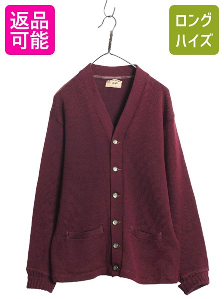【11/16 48h限定555円OFFクーポン!】 40s ★ ピューリタン ウール ニット カーディガン メンズ M 古着 ヴィンテージ セーター 前開き アワード バーガンディ 無地 ポケット付き| 中古 40年代 40's ビンテージ PURITAN カレッジ ニットカーディガン 長袖ニット 長袖セーター