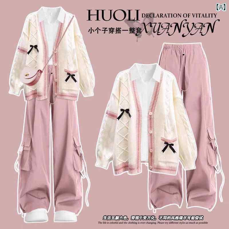 ニット ツーピース レディース 中学生 ファッション スーツ 女の子 2024 スタイル ガールズ カレッジ ニットカーディガン セーター ジャケット カジュアル スリーピーススーツ