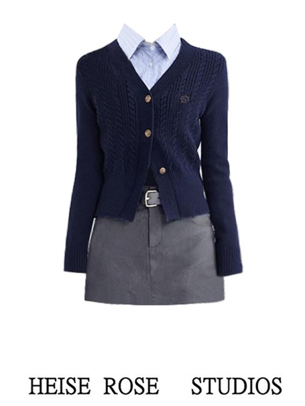 スカート レディース ファッション ガーリー 大人かわいい レトロ カレッジ ニットカーディガン 女性 春秋 Vネック 刺繍 ショート セーター ツーピース