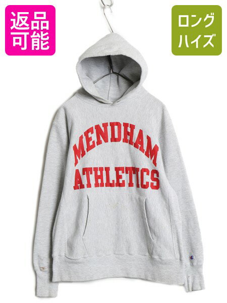 90s USA製 ★ チャンピオン リバースウィーブ スウェット パーカー メンズ L / オールド カレッジ プリント フード トレーナー 裏起毛 灰| 古着 中古 90's 90年代 Champion アメリカ製 リバース プルオーバー スエット スウェットパーカー フードパーカー 霜降り グレー