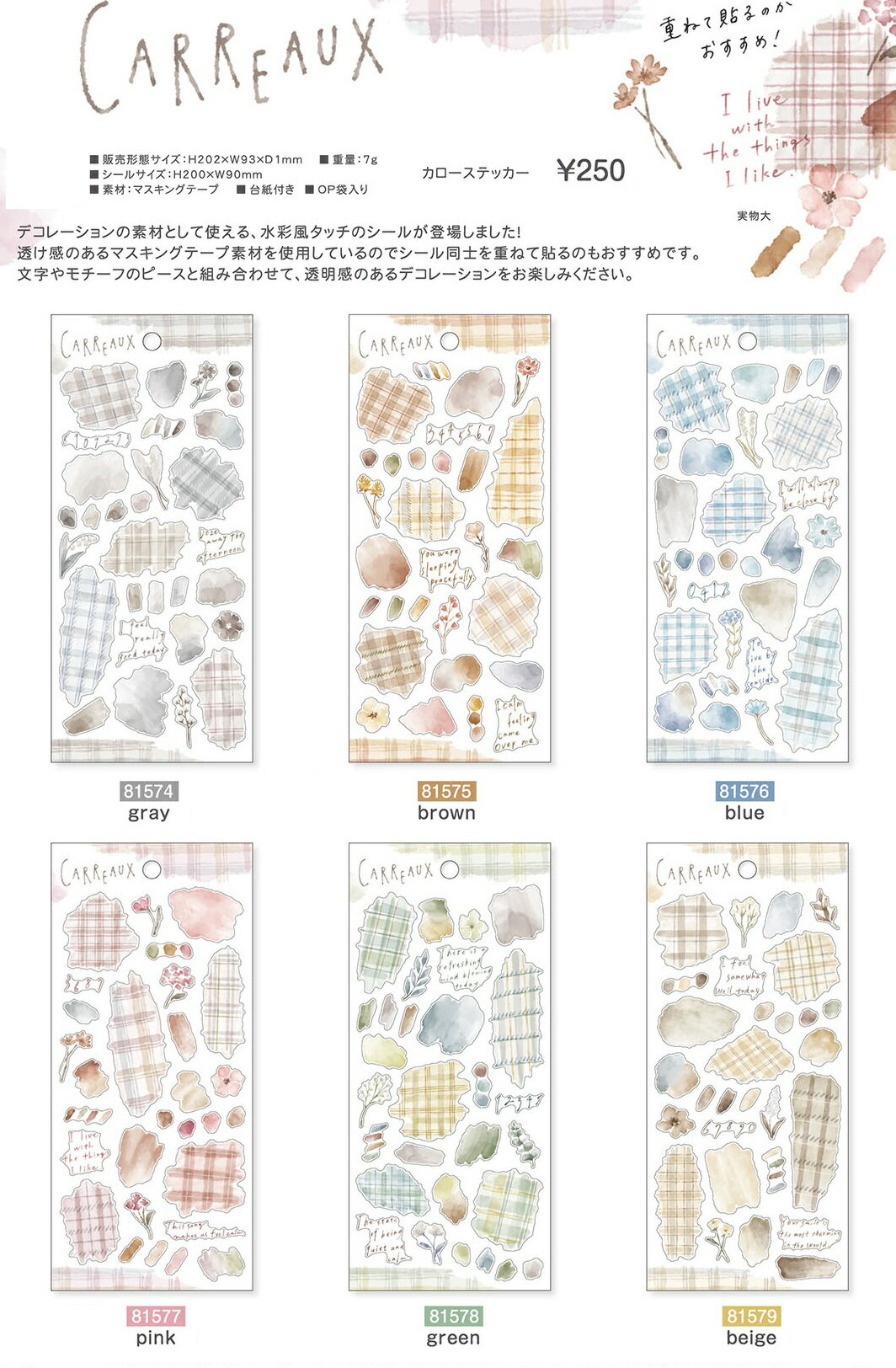 デコレーションの素材として使える、水彩風タッチのシールです。 透け感のあるマスキングテープ素材を使用しているのでシール同士を重ねて貼るのもおすすめです。 文字やモチーフのピースと組み合わせて、透明感のあるデコレーションをお楽しみください。 ●シールサイズ:縦200×横90mm ●素材:マスキングテープ 【関連キーワード】 マインドウェイブ マインド ウェイブ まいんどうぇいぶ MINDWAVE MIND WAVE 新作 新商品 新登場 NEW おすすめ 人気 プレゼント ギフト ラッピング 飾り 趣味 集め 集める 収集 コレクター 手帳 てちょう ダイアリー スケジュール スケジュール帳 手帳デコ デコレーション デコ 手帳作り 手帳づくり コレクション コレクションブック コラージュ コラージュブック 素材 資材 ぶんぼうぐ ぶんぐ 文具 文房具 ステーショナリー テープ シール シール帳 日記 カレンダー 記録帳 リングノート ノート ノート作り ノートづくり シリーズ スクラップブッキング 手紙 てがみ レター お便り おたより キャラクター キャラ マスコット 贈り物 おくりもの ワンポイント アクセント シール seal sticker mini ステッカー フレークシール シートシール シールシート ミニシール コレクションシール コラージュシール デコレーションシール ワンポイントシール ごほうびシール ミニシール 小さいシール 大きいシール 手帳シール スケジュールシール 手帳ステッカー スケジュールステッカー カレンダーステッカー コラージュステッカー 季節シール シーズンシール しるし 印 ポイントシール