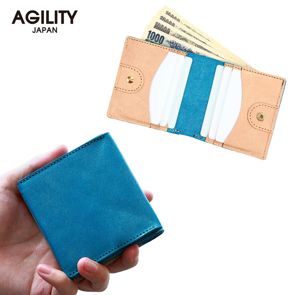 『カロ—』(全1色)ロロマ/【二つ折り財布 box型小銭入れ メンズ レディース 財布 ミニ財布 正方形 コンパクト 折財布 小さめ ボックス型 革 本革 ターコイズブルー】【AGILITY affa(アジリティアッファ)】(0593)