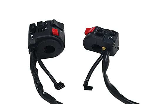 商品情報 商品の説明 ヤマハ カワサキ タイプ バイク 用 ハンドルスイッチ 左右 セット 汎用の社外品になります。 商品詳細: 【左】スイッチ・ヘッドライト(ポジションON/OFF) キルスイッチ セルスイッチ 配線長さ(約):670mm(7ピン) サイズ(約):幅34mm×高さ67mm 対応ハンドル径:22mm 【右】スイッチ・ハザード ヘッドライト(Hi/Lo切替) ウインカー(プッシュキャンセル) ホーン パッシング 配線長さ(約):700mm(9ピン) サイズ(約):幅55mm×高さ71mm 対応ハンドル径:22mm 経年変化による接触不良や傷、割れ、くすみが発生したら左右一緒に アッセンブリーで交換する事をお勧めします。 ヤマハ、カワサキの純正スイッチボックスと同じタイプの汎用品です。 汎用品ですので、車両に合わせて配線を加工すれば様々な車種にご使用頂けます。 ハンドルスイッチは運転時に必ず操作するパーツです。 スイッチが上手く動作しないと、安全面で非常に危険な状況になります。 純正部品はコストがかかりますので、品質の良い社外品すれば安心です。 調子悪くなんかおかしいと感じたら、早めに交換することをお勧めします。 ※取扱説明書は付属しておりません。 ※汎用品ですので車両に合わせた配線加工が必要になります。 主な仕様 商品詳細:【左】スイッチ・ヘッドライト(ポジションON/OFF) キルスイッチ セルスイッチ 配線長さ(約):670mm(7ピン)サイズ(約):幅34mm×高さ67mm 対応ハンドル径:22mm 【右】スイッチ・ハザード ヘッドライト(Hi/Lo切替) ウインカー(プッシュキャンセル) ホーン パッシング 配線長さ(約):700mm(9ピン) サイズ(約):幅55mm×高さ71mm 対応ハンドル径:22mm 経年変化による接触不良や傷、割れ、くすみが発生したら左右一緒にアッセンブリーで交換する事をお勧めします。ヤマハ、カワサキの純正スイッチボックスと同じタイプの汎用品です。 汎用品ですので、車両に合わせて配線を加工すれば様々な車種にご使用頂けます。ハンドルスイッチは運転時に必ず操作するパーツです。スイッチが上手く動作しないと、安全面で非常に危険な状況になります。 純正部品はコストがかかりますので、品質の良い社外品すれば安心です。調子悪くなんかおかしいと感じたら、早めに交換することをお勧めします。