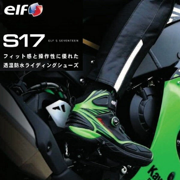 ELFのシューズにKawasakiグリーンを採用したモデルです。 フィット感と操作性に優れた透湿防水ライディングシューズ サイズ:25.0〜28.0cm 品番:J8906-K038:25.0cm 品番:J8906-K039:25.5cm 品番:J8906-K040:26.0cm 品番:J8906-K041:26.5cm 品番:J8906-K042:27.0cm 品番:J8906-K043:27.5cm 品番:J8906-K044:28.0cmELF S17