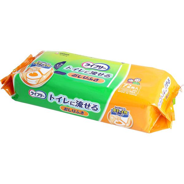 ライフリーおしりふき トイレに流せる 72枚入 使い捨て お尻ふき やわらか厚手 医療 使いやすい ユニチャーム カワモト 施設 高齢者 川本産業 シート 介護施設 サイズ 大人用おしりふき 清拭剤 ケース 大人用 大判 衛生 体拭き 清拭 おしり拭き 流せる