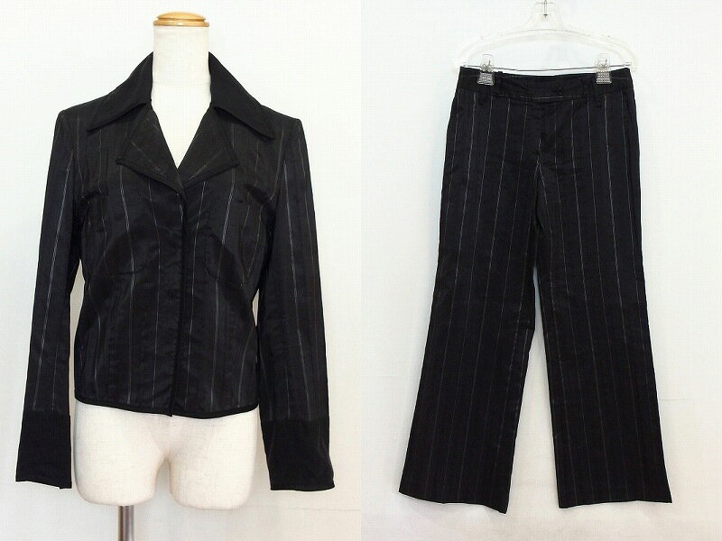 【中古】CANTARELLI シルク混 パンツスーツ セットアップ I:42 ブラック ok4012167700