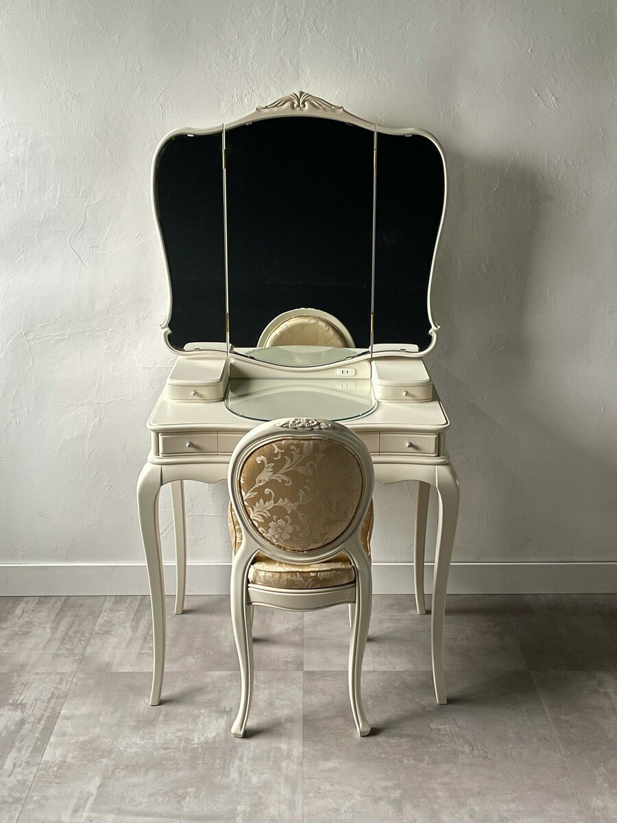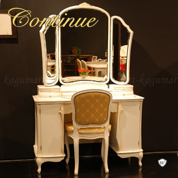 カンティーニュ ドレッサー アルバ 猫脚家具 白い家具 クラシック家具 ロココ調 ラグジュアリー エレガント メイク 松永工房 アンティーク 送料無料 一面鏡 ミラー 鏡 椅子付