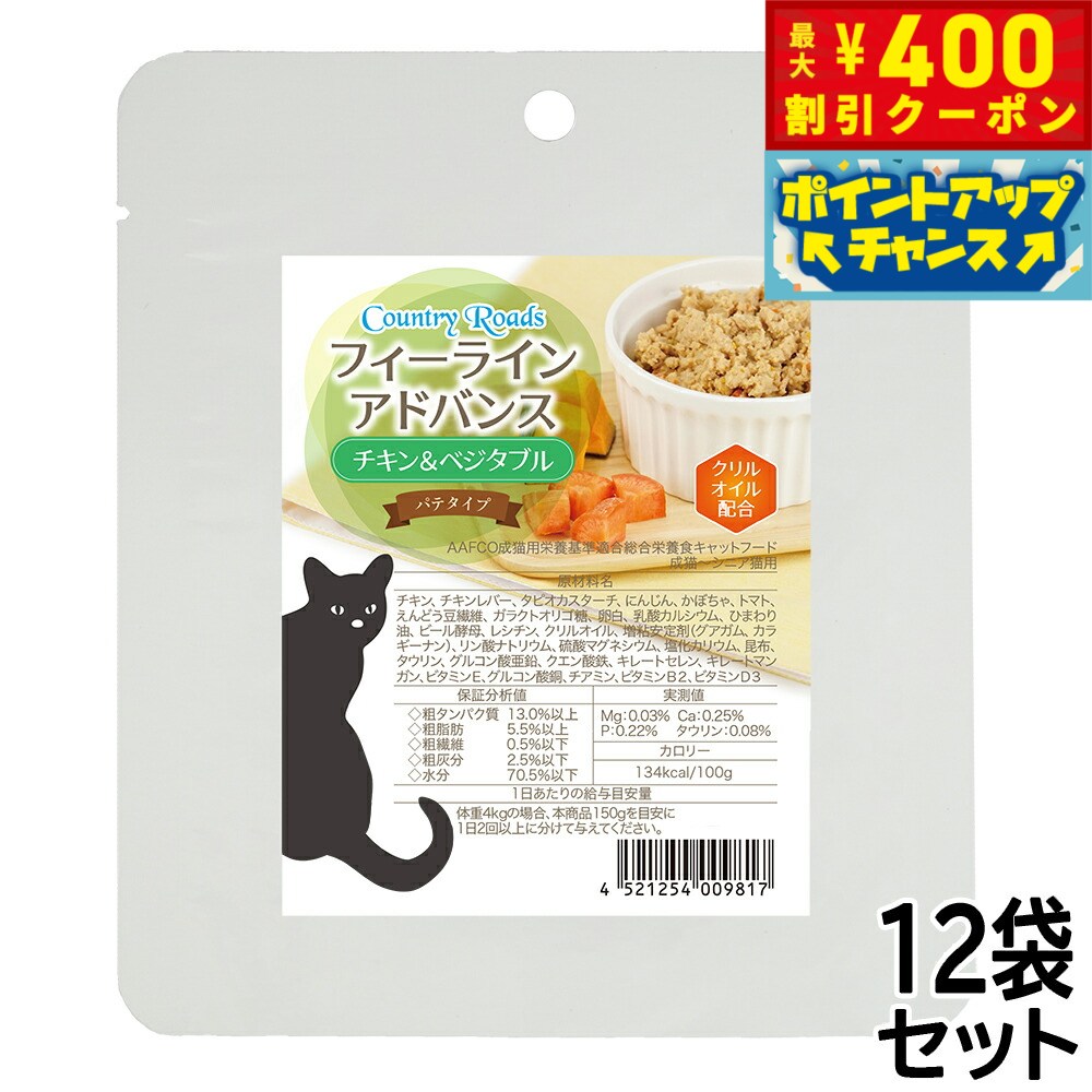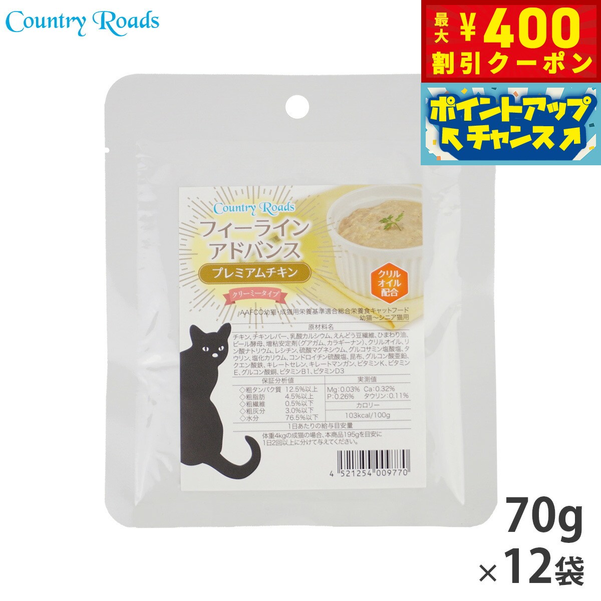 【400円OFFクーポン!&店内ポイント最大42倍!3月1日!】カントリーロード フィーラインアドバンス プレミアムチキン 12袋セット【送料無料】 無添加 猫用 グレインフリー 穀物不使用 パウチ ウェット