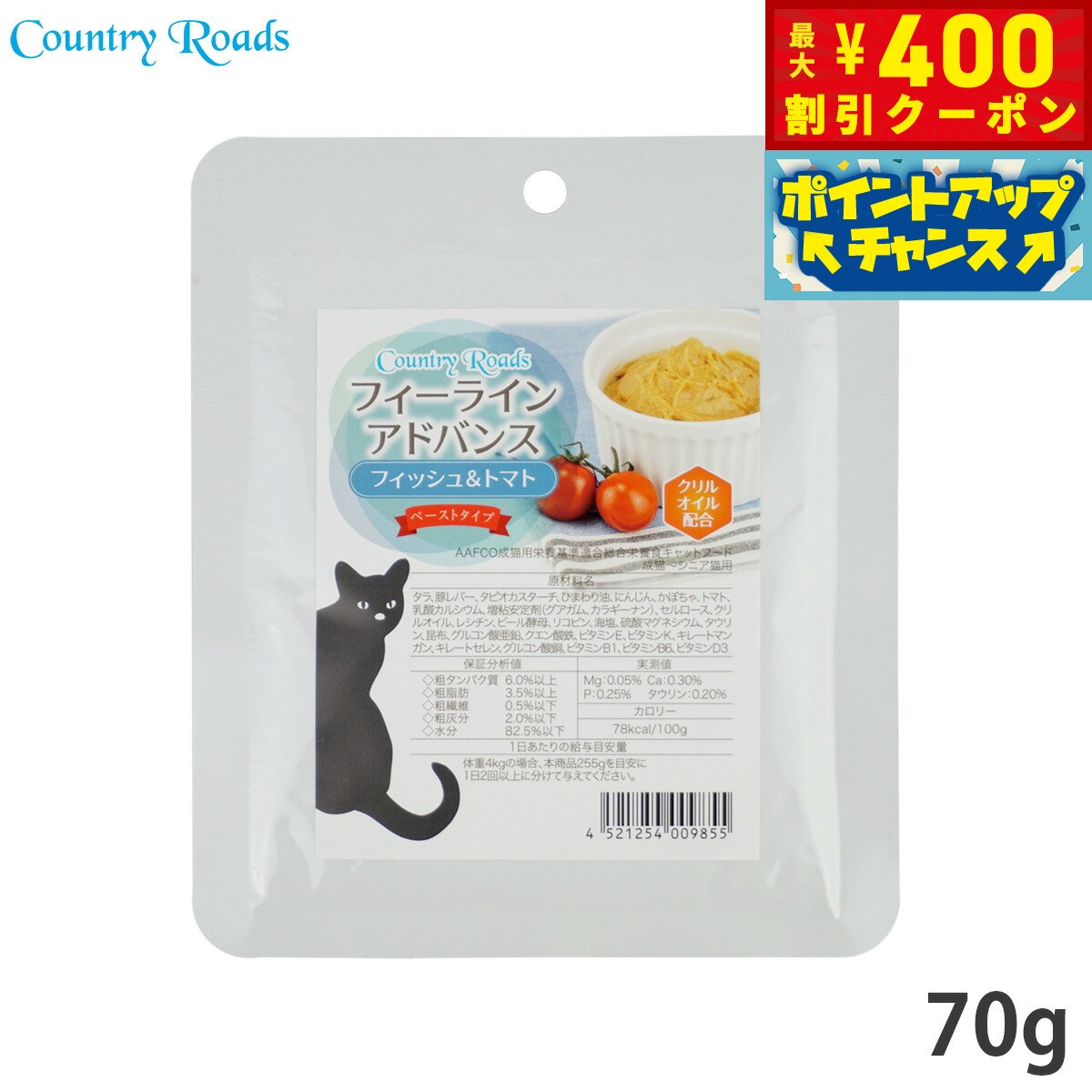 【400円OFFクーポン!&店内ポイント最大42倍!3月1日!】カントリーロード フィーラインアドバンス フィッシュ&トマト 70g 無添加 猫用 グレインフリー 穀物不使用 パウチ ウェット