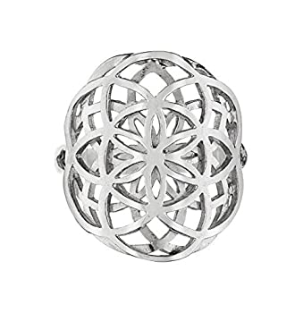 【中古】【輸入品・未使用】Koral Jewelry 生命の種リング - 925スターリングシルバー 神聖なジオメトリ ダブルフラワー オブライフ - ヨガリング - カバラリング - 美しく