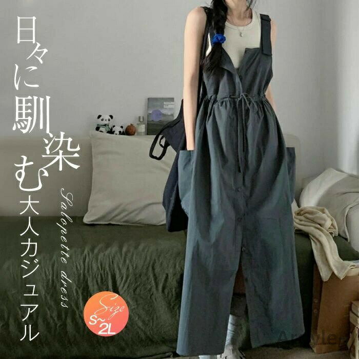 タンクトップ ワンピース ジャンパースカート サロペット レディース スカート ロング 大人 カーゴサロペット きれいめ ノースリーブ ゆったり 春 夏 オールインワン オーバーオール つなぎ シンプル サロペットスカート 体型カバー カジュアル おしゃれ