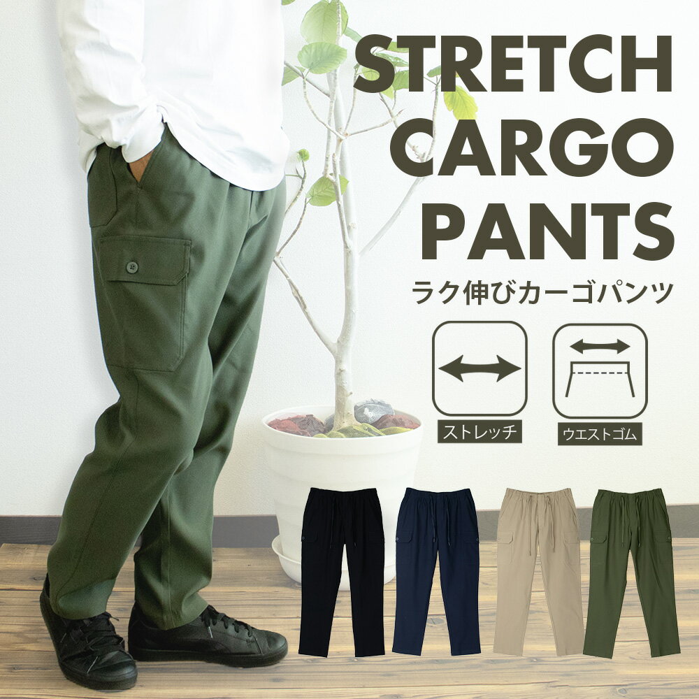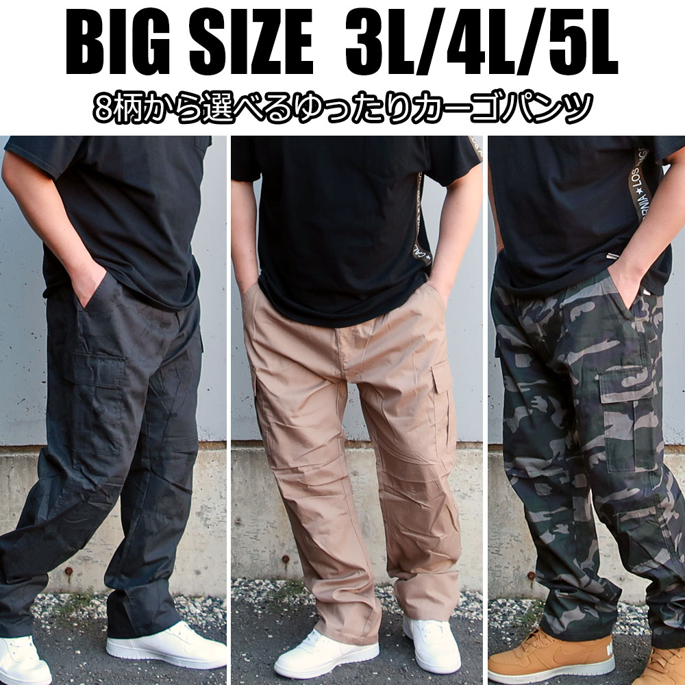 メンズ パンツ 大きいサイズ パンツ カーゴ チノパンツ M L 2L 3L 4L 5L XXL XXXL XXXXL ゆったり 黒 ブラック ベージュ カーキ チャコール 迷彩 カモ 大きめ ウエストゴム 年間定番 春 夏 秋 冬 ミリタリー 無地