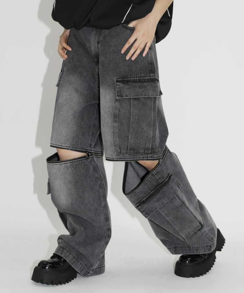 <MSG>12ozオーバーサイズワイドストレート2wayZIPカーゴデニムパンツ/エムエスジー(MSG)
