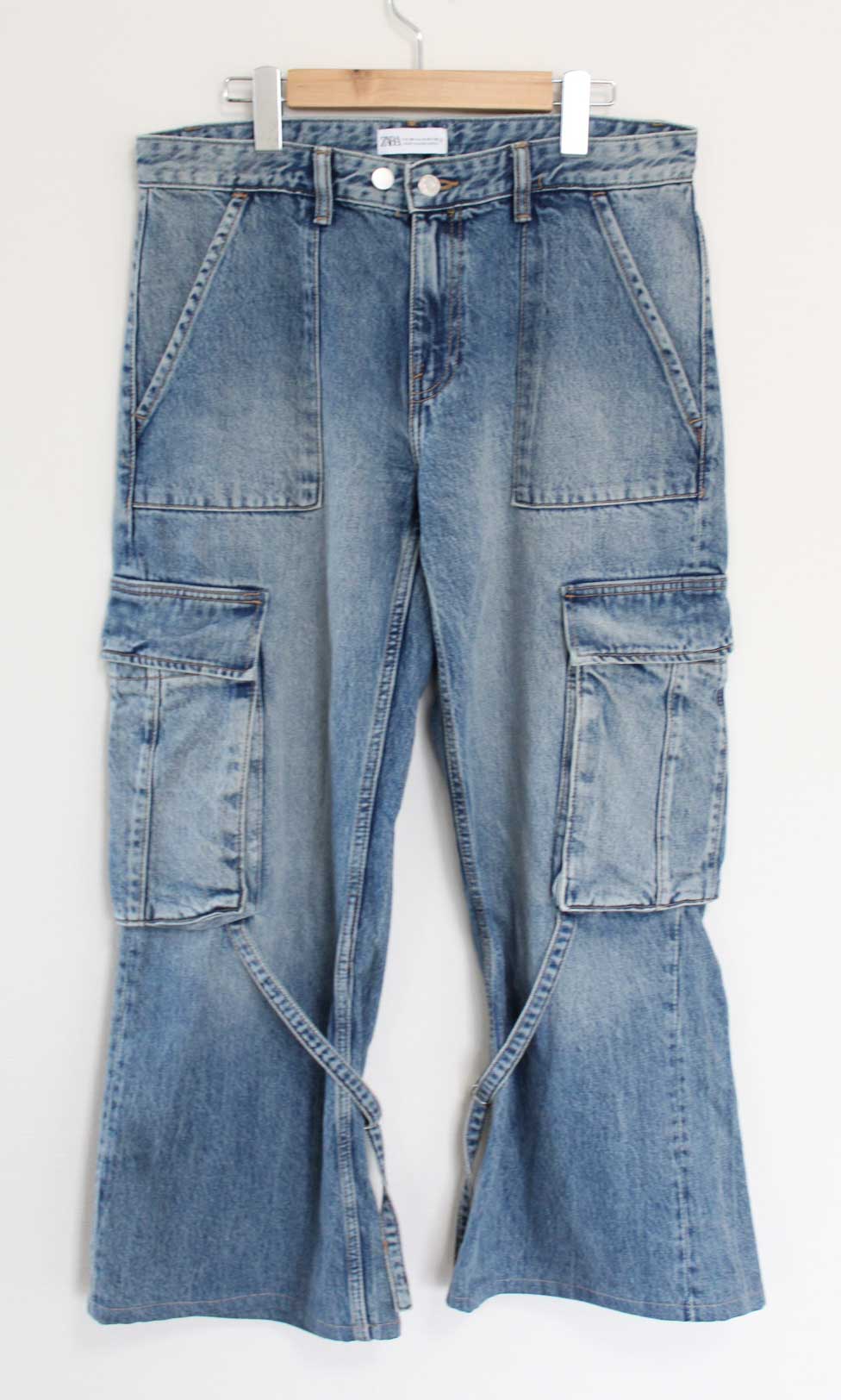 ●ZARA/ザラ●ユーズド加工カーゴデニムパンツ/ロングパンツ/長ズボン/十分丈 インディゴ レディース US8【中古】春夏秋冬 911142