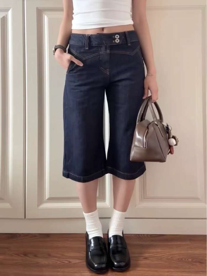 ノンフェード折りたたみカーゴデニムパンツ デニムパンツ レディース|韓国 privatelookbook|コーディブック