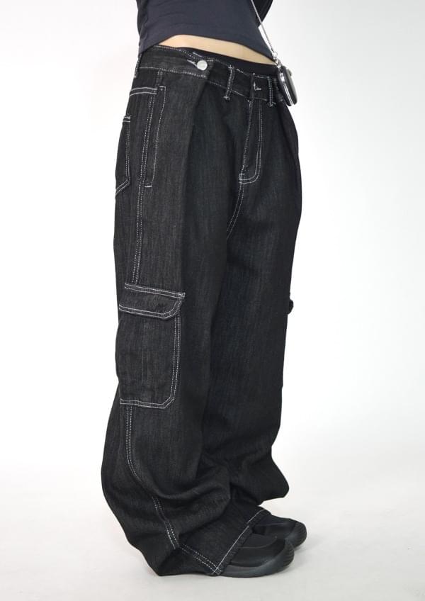 BOSC BACK POCKET BIG LOGO CARGO DENIM PANTS ボスクバックポケット ビッグロゴ カーゴデニムパンツ 男女共用 (3カラー) デニムパンツ レディース|韓国 MUCENT|コーディブック