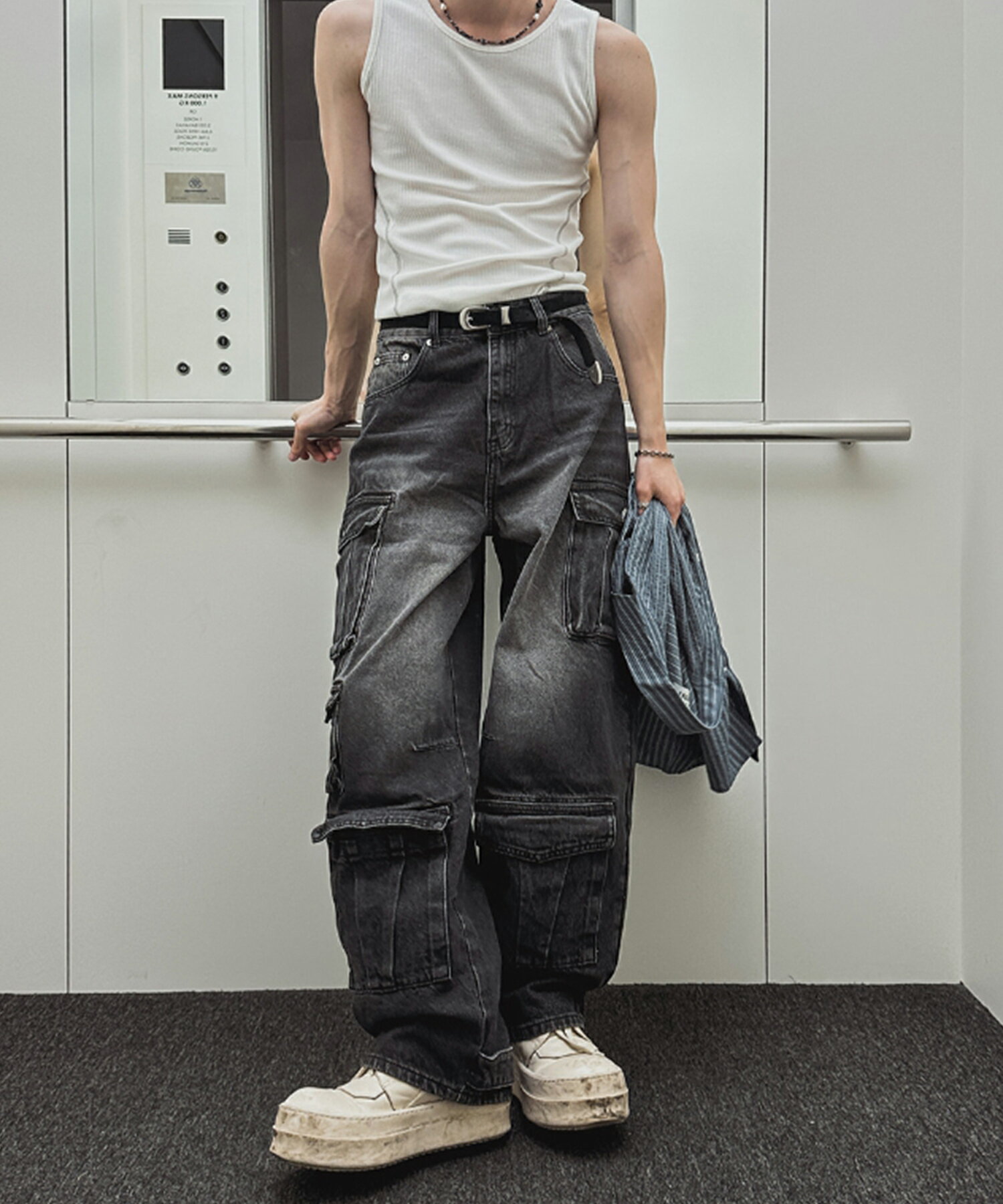 【HOOK】ストラップベルトカーゴデニムパンツ/フック(HOOK)