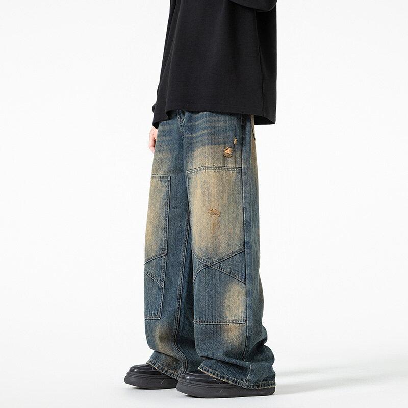 ・カテゴリ: ジーンズ・スタイル: 韓国・デザイン: ベーシック・性別: 男性・対象: 青少年・シーン: カジュアル・素材: 綿70.5%、ポリエステル15.1%、再生セルロース繊維13.4%、その他繊維1.0%・厚さ: 普通・伸縮性: 微ストレッチ・丈: フルレングス・ウエスト: ミドルウエスト・シルエット: ルーズフィット・裾: ストレート・フロント: ジップフライ・加工: ウォッシュ加工、ヴィンテージ加工、ブリーチ加工・加工技術: 形態安定加工・デザイン詳細: 配色デザイン・カラー展開: ブラック、ブルー・サイズ展開: M、L、XL、XXL、3XL、4XL、5XL
