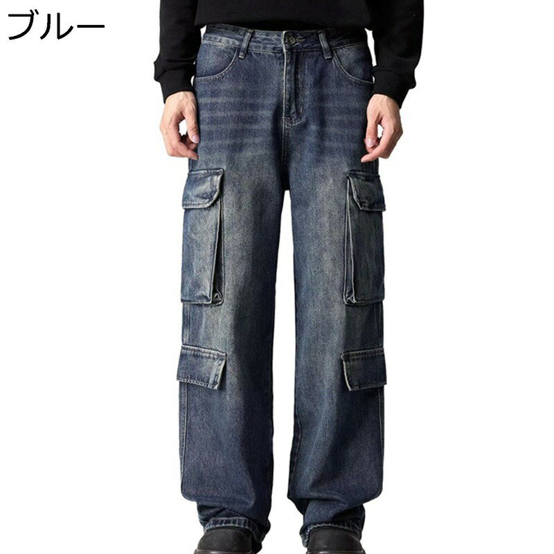 カーゴデニムパンツ 原宿系 S-3XL デニムパンツ ロングパンツ メンズ 多ポケット ウォッシュ加工 ジーパン ストリート系 ストレートタイプ ジーンズ 四季使用 Gパン 薄い ワークパンツ ワイド おしゃれ