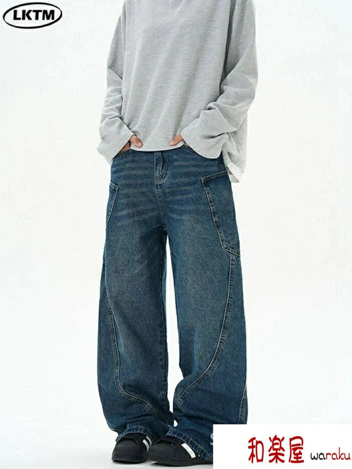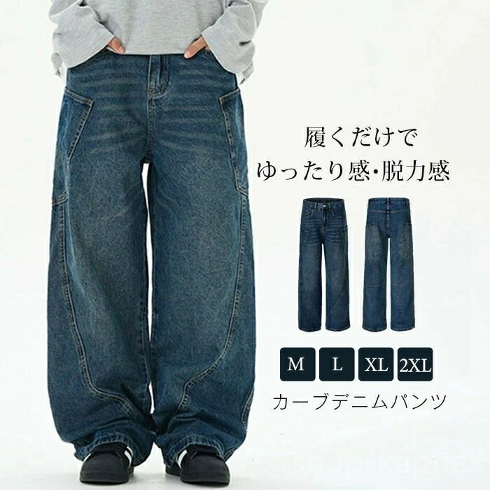 かっこいい カジュアル カーゴデニムパンツ ジーンズ ダンス ゆったり デニム カーブ メージデニム メンズ デニムパンツ