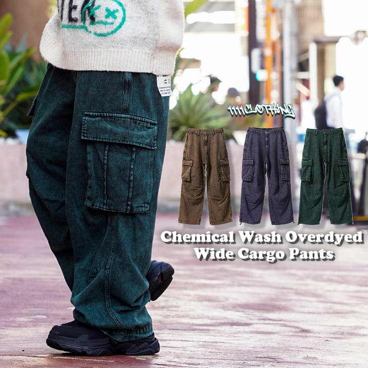 【10%OFFクーポン!11/27(木)1:59まで】ONE 4 PREMIUM ◆ケミカルウォッシュ オーバーダイ ワイドカーゴパンツ◆ ワイド カーゴパンツ メンズ カーゴ ワイドデニム レディース カーゴデニムパンツ カラーデニム デニムカーゴ パ